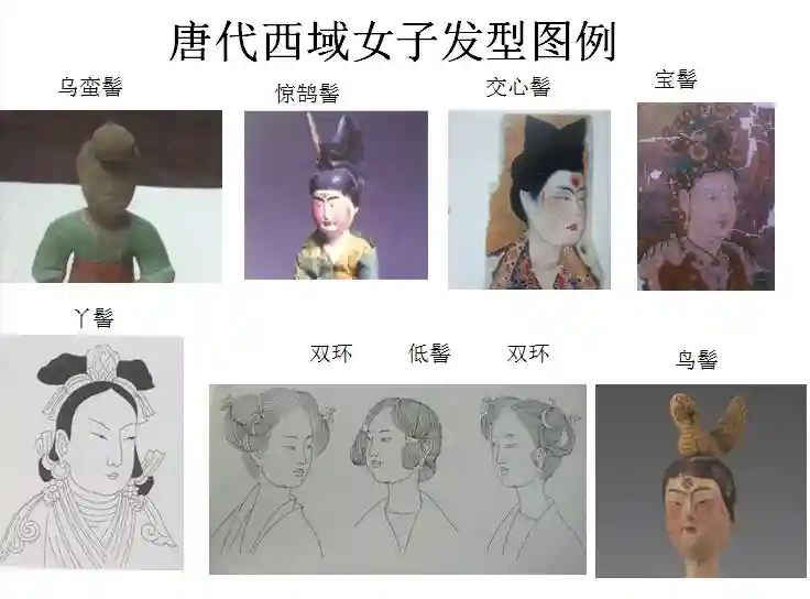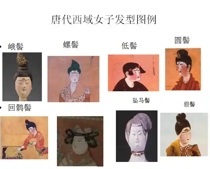 不过,当时的盘发叫发髻,唐代的发髻可谓花样繁多,根据唐代文学家的记载,唐代的发髻花样多到30余种。这些发髻花样传入西域以后,部分发型被西域女子沿用,还有部分发型则被她们根据自己的喜好进行了创新。据悉,当时在西域流行的发髻种类,至少在十余种以上。