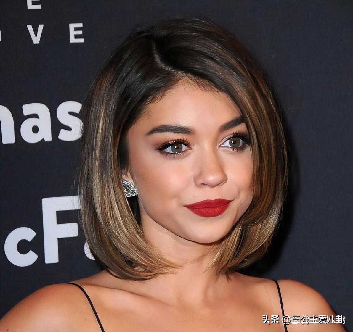 像莎拉·海兰(SarahHyland)一样,用直直的分层波波头和微妙的侧刘海来展示你的体积。她的发尾和刘海向下卷曲,完美地衬托出她的脸型。