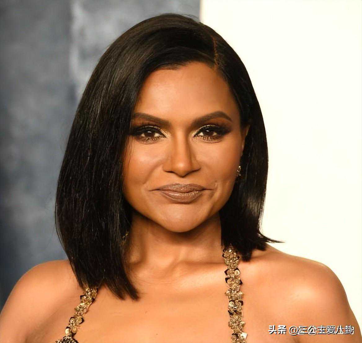 如果中间部分光滑的鲍勃不吸引你,可以考虑这款深侧分的钝鲍勃。MindyKaling闪亮的锁骨长度剪裁为她的整体造型增添了光彩,而侧面部分则增添了戏剧性的触感。