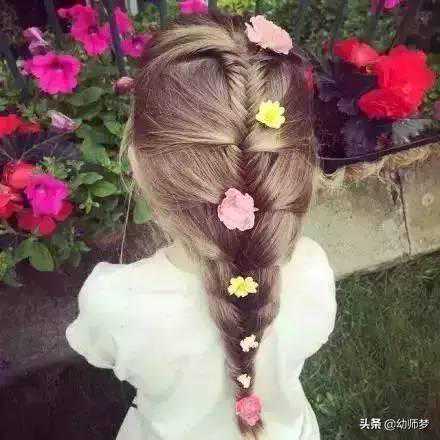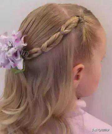 这款小女孩发型,受到很大的欢迎。头发中分,左边的头发从中缝开始编,编成一条麻花辫。