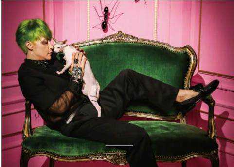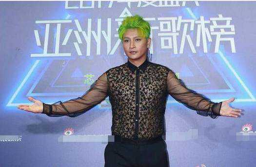 一头夸张的绿发,美女环绕,太妖艳了,你能想象得到,这是一个47岁的中年男子嘛!