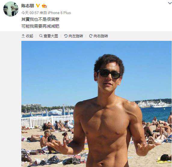 陈志朋也许知道自己这样子有点笨拙也很滑稽,随后在微博里回应:自己也不是很满意,可能需要减肥,并附了一张彭于晏的照片,意思是彭于晏是你的目标么