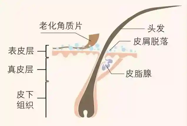 成年人的头皮面积约为650~700平方厘米,与身体其他皮肤相比,头皮表皮角化和更新的速度更快,约是其他皮肤的两倍。头皮分为三层,由外向内分别为表皮层、真皮层、皮下组织。