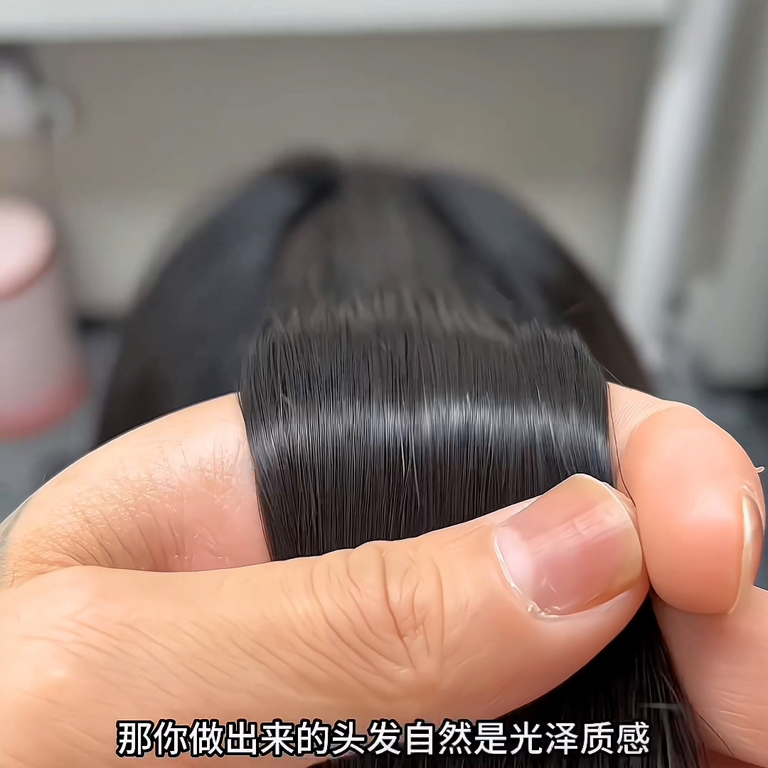 小姐姐本身的头发是沙发自然卷,很毛躁,做过蛋白矫正但是效果并不理想。如果你对每一种发质都足够的了解,你对你的产品也足够的有自信,你对你的技术也绝对的有信心,那你做出来的头发自然是光泽质感。