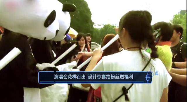他在演唱会之前扮成熊猫人派发应援荧光棒,等到进场时才脱下头套,粉丝们尖叫无数。啊呀呀,魏晨这个真是超惊喜了!