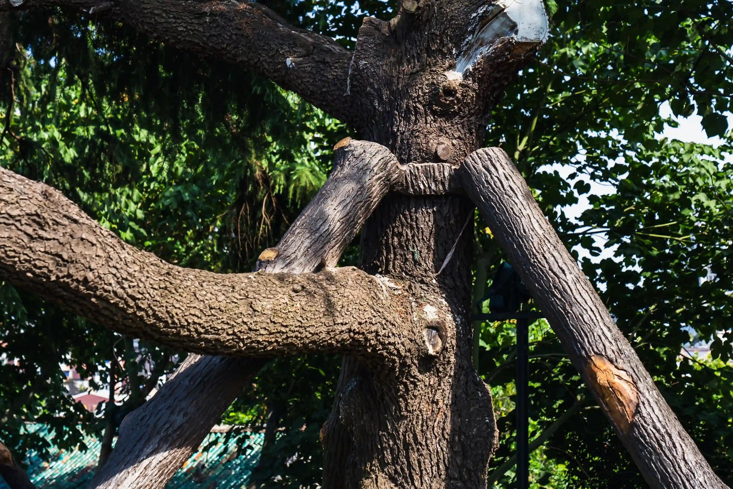 6月18日,记者获悉,武汉长江大桥武昌引桥两侧44株雪松所“拄”的“拐杖”,全部做了仿生“美容”,同时雪松采用保养“套餐”进行了复壮处理。
