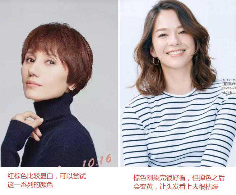 对于中年女性来讲,如果能维持黑色发色的就尽量维持,因为黑色是色彩中最显沉稳得体的颜色,稍微描一个眉毛、涂个口红就很显气色。