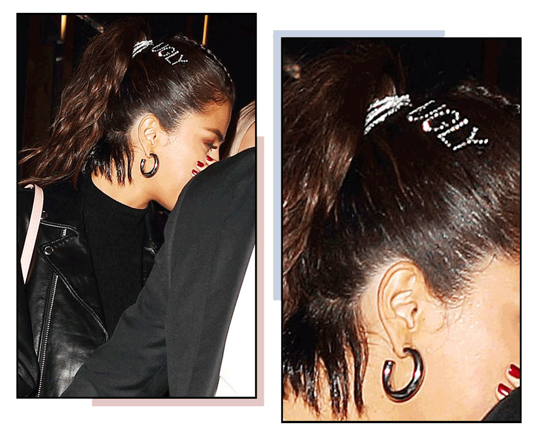赛琳娜这一套就玩得很熟,之前DG的设计师在ins上吐槽她丑,第二天,她就直接头上带了个“UGLY”,这自嘲式回应很有风度了。