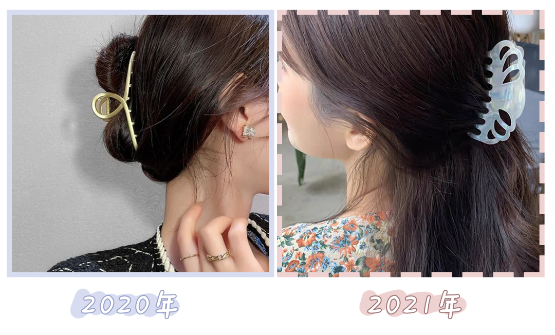 别急,现在流行的鲨鱼夹都悄悄进化了。像去年可能流行金属色、珍珠款式的鲨鱼夹,但是今年更流行有些花纹、样式复杂、材质特别一点的鲨鱼夹。