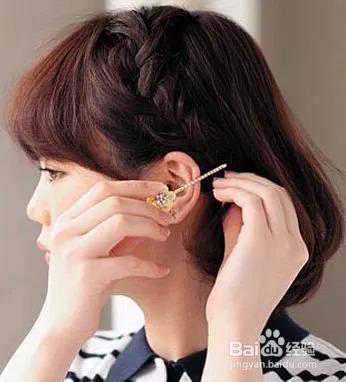3、短发女生可以将脸部两侧的头发编成辫子,用一个漂亮的夹子固定,既清爽又时尚。