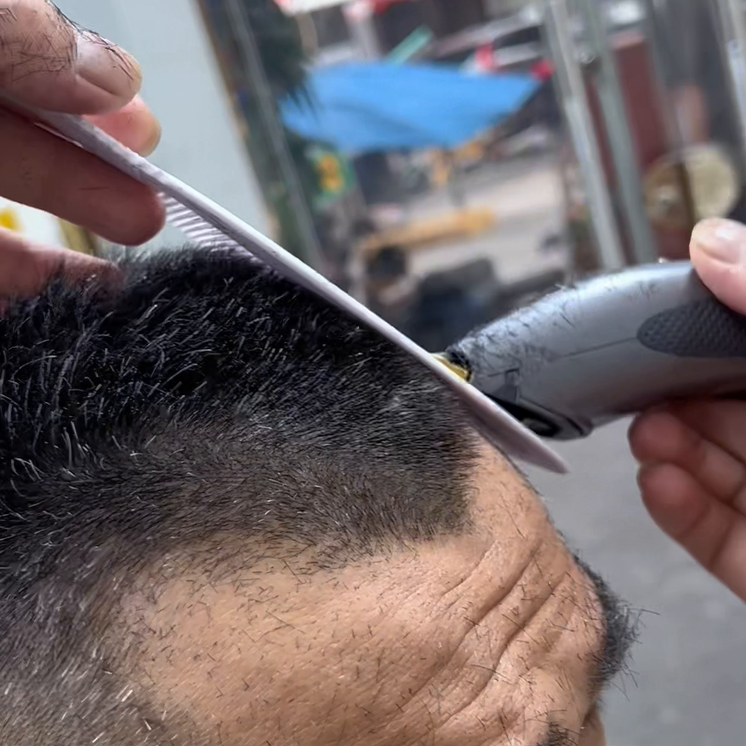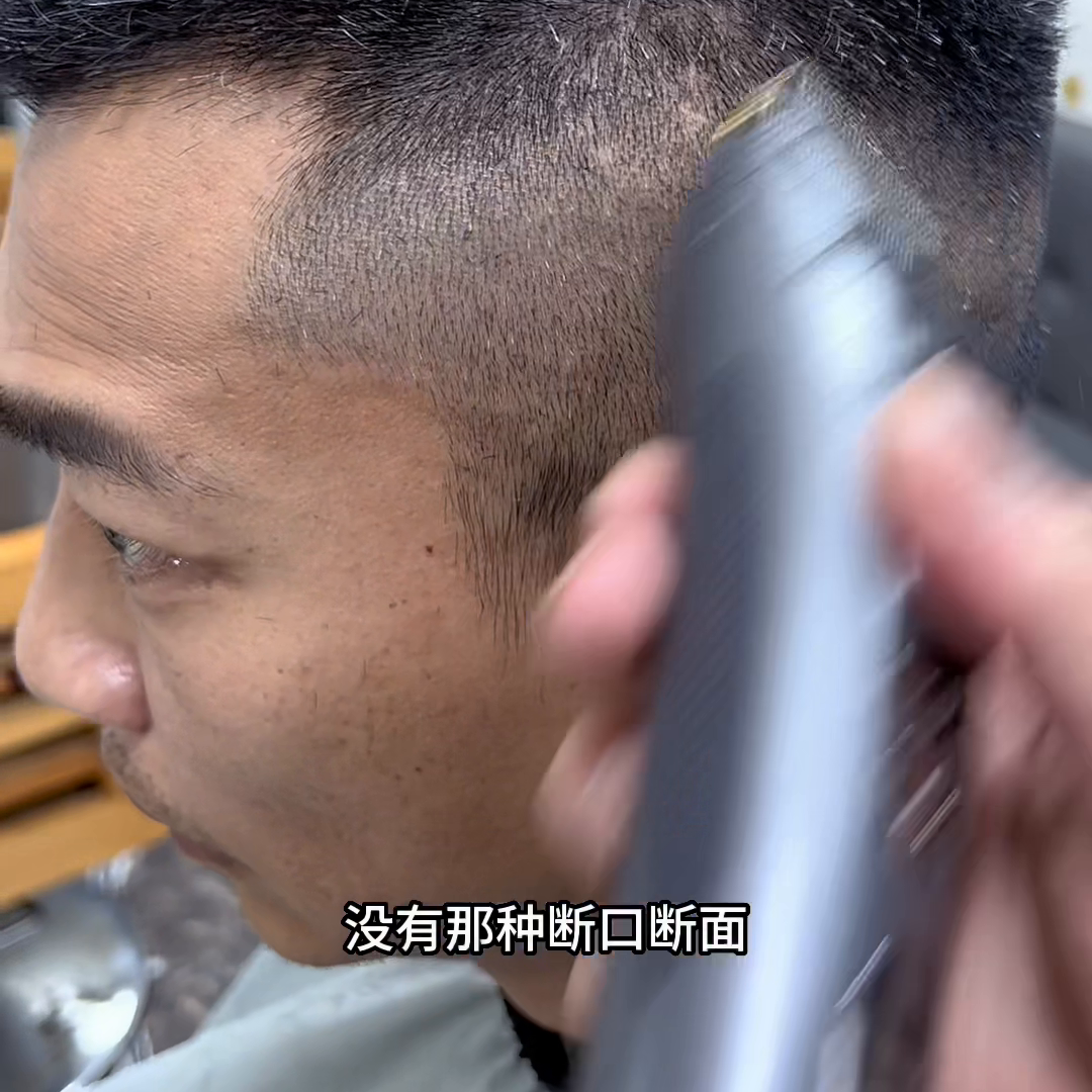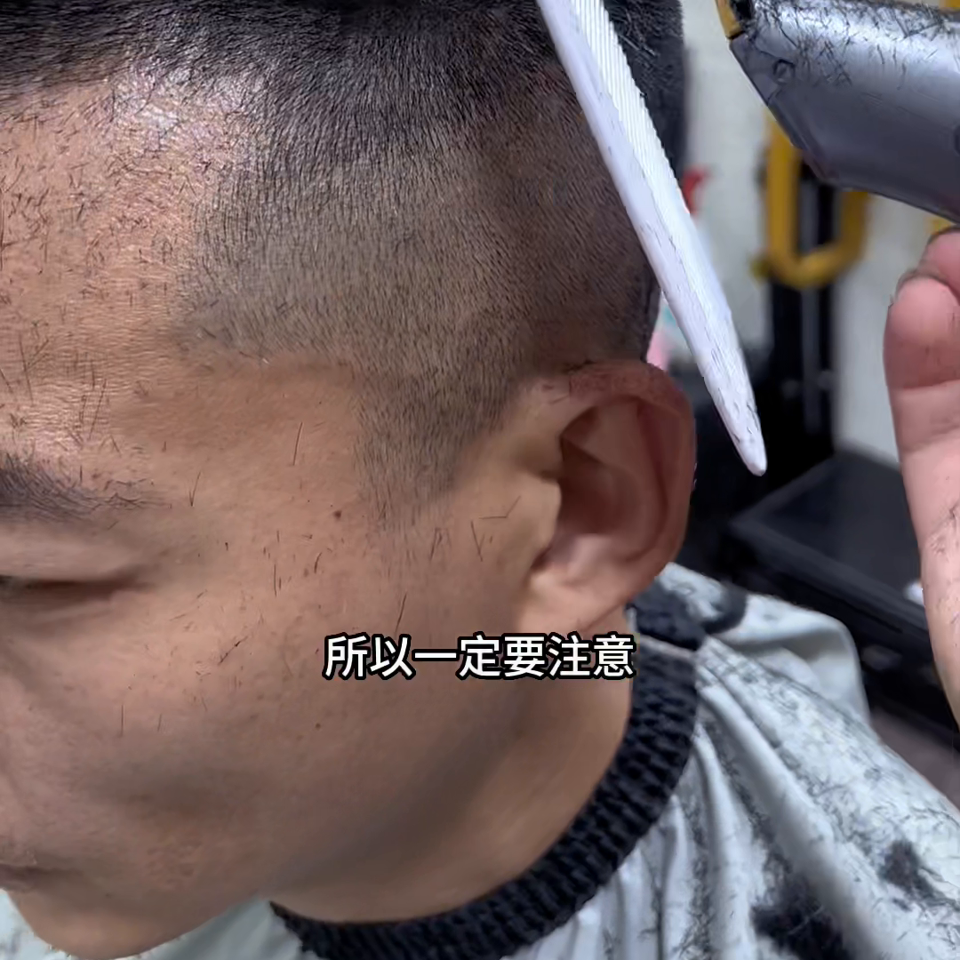 技术技巧都是在走精修手法的修圆处理,所以你们只需要掌握这一个精修手法。在剃圆头的过程中精修手法学会之后,再加以这一个梳子比较宽一点的梳子去剃发,你发现特别稳定。