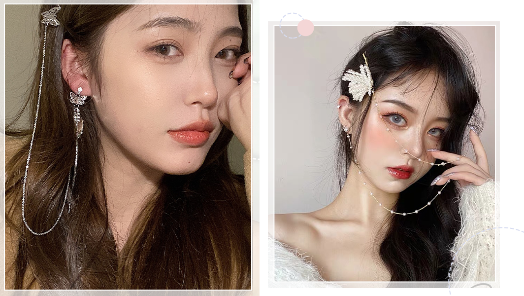 头发到耳垂垂下的链条,不仅看起来非常有个性,还特别的修饰脸型,圆脸的姐妹戴上,就是无敌巴掌脸的既视感。