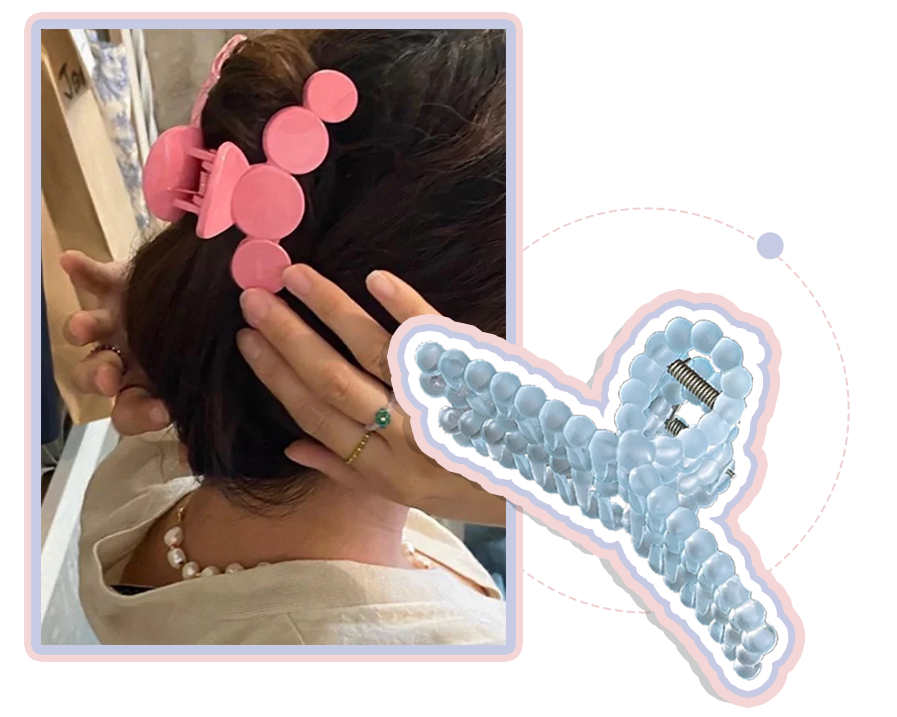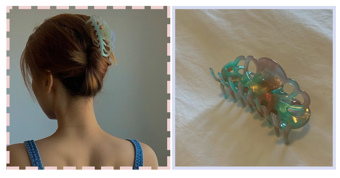 还有一些亚克力串珠式抓夹,也是今夏的大热门,毕竟清清凉凉的质地和颜色,跟夏天最般配了!