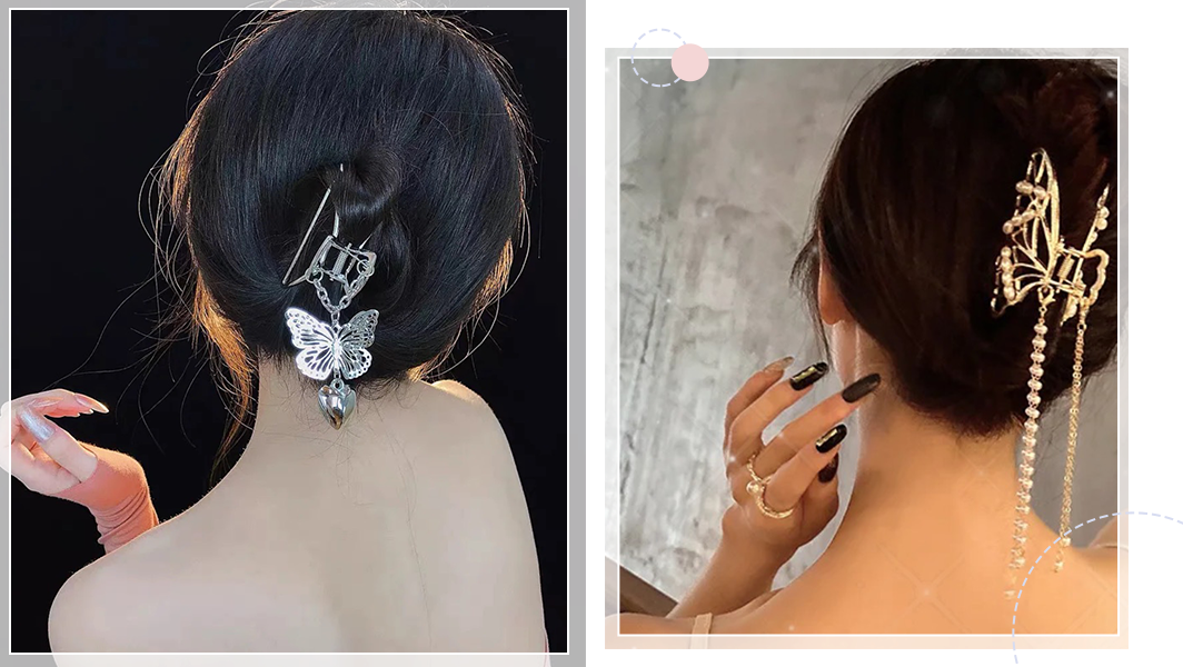 不介意发饰重的姐妹,还可以试试更进阶的流苏蝴蝶鲨鱼夹,温婉复古,颇有大家闺秀的feel~