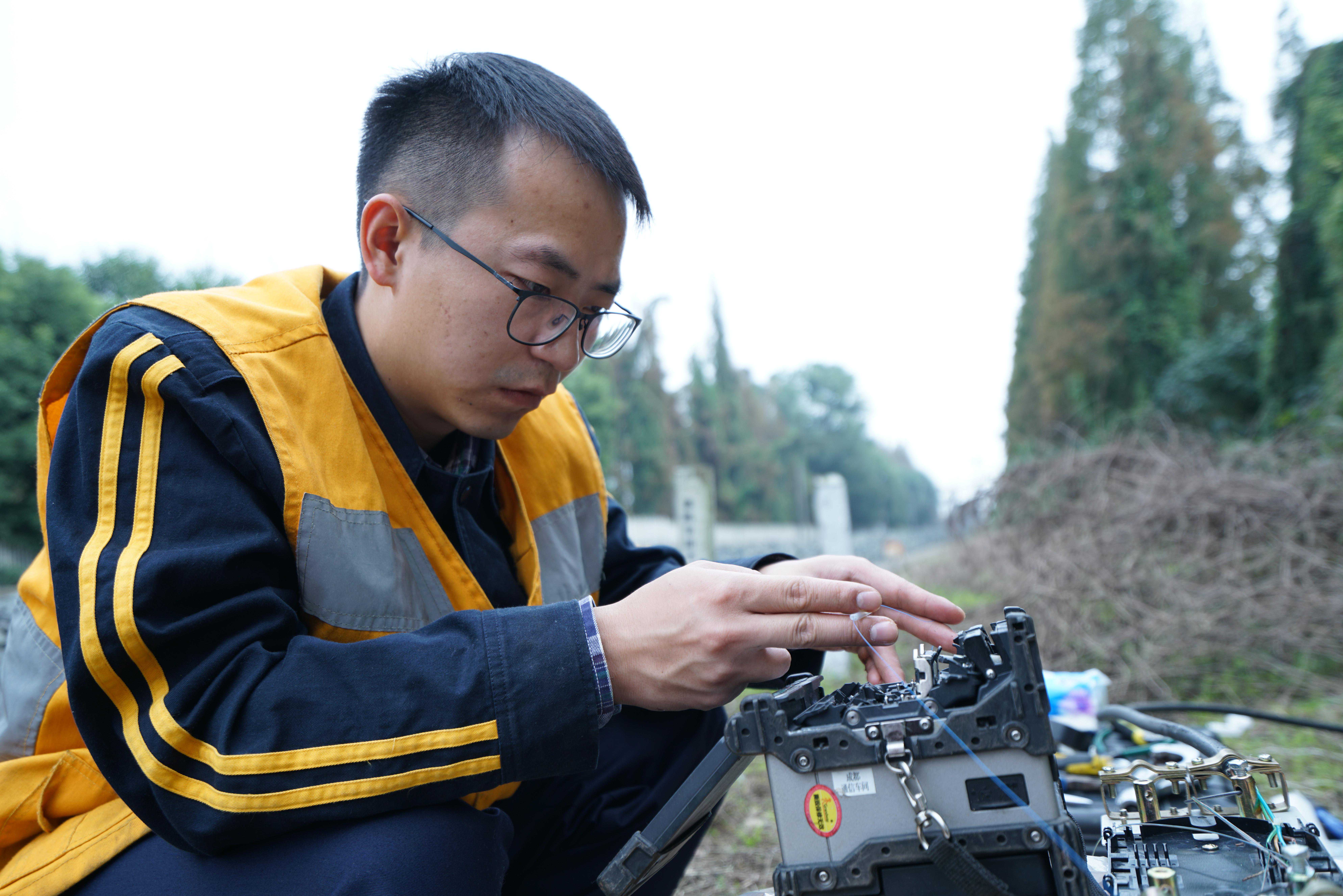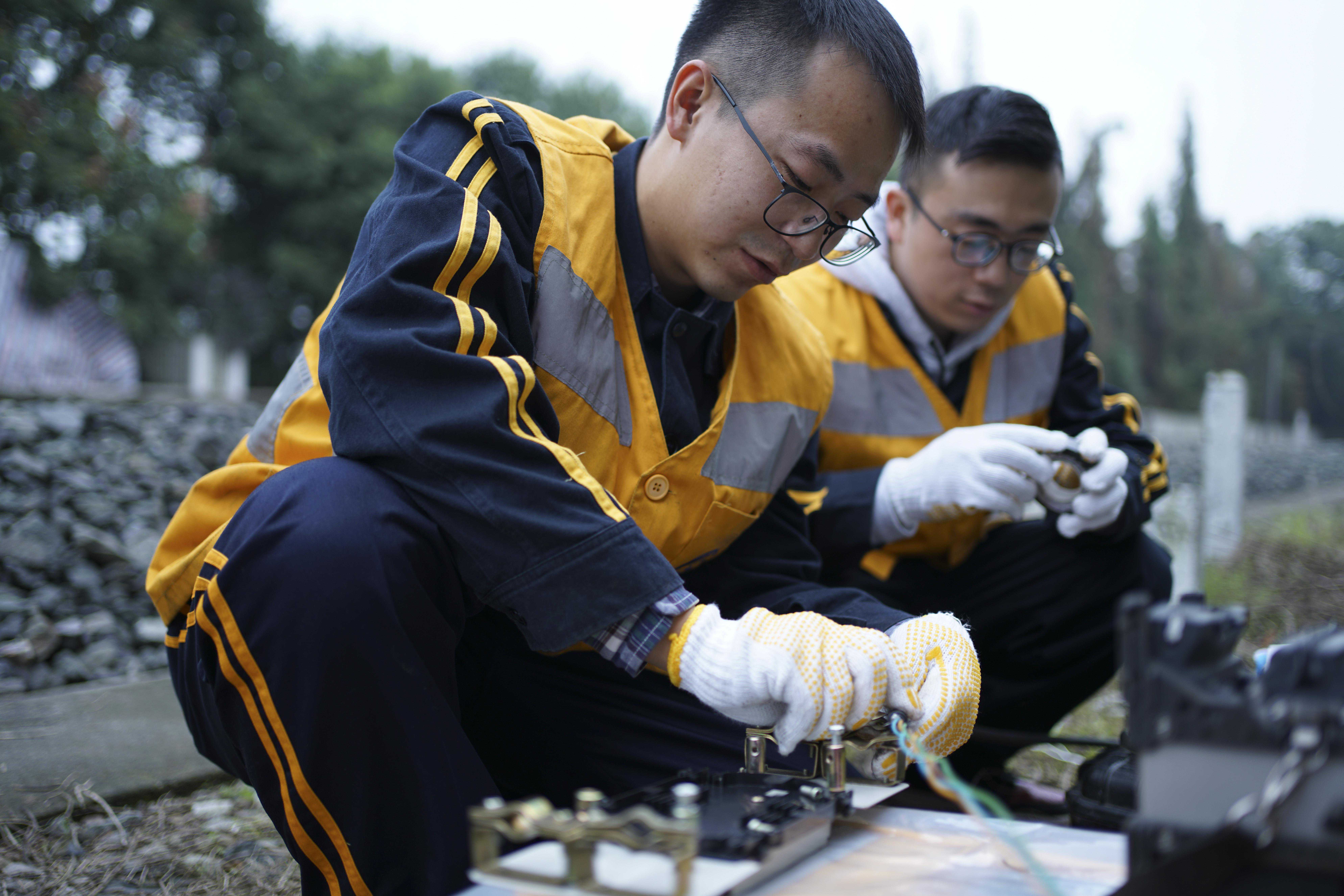 同样的动作,他们要重复几十甚至上百次。过程中还要配合加装挡水圈、使用防水胶、固定缆线等系列操作,直至纤芯接续和测试全部完成,才代表着故障处置完毕,连接该火车站的大数据网立刻恢复了正常。