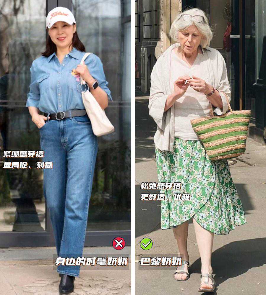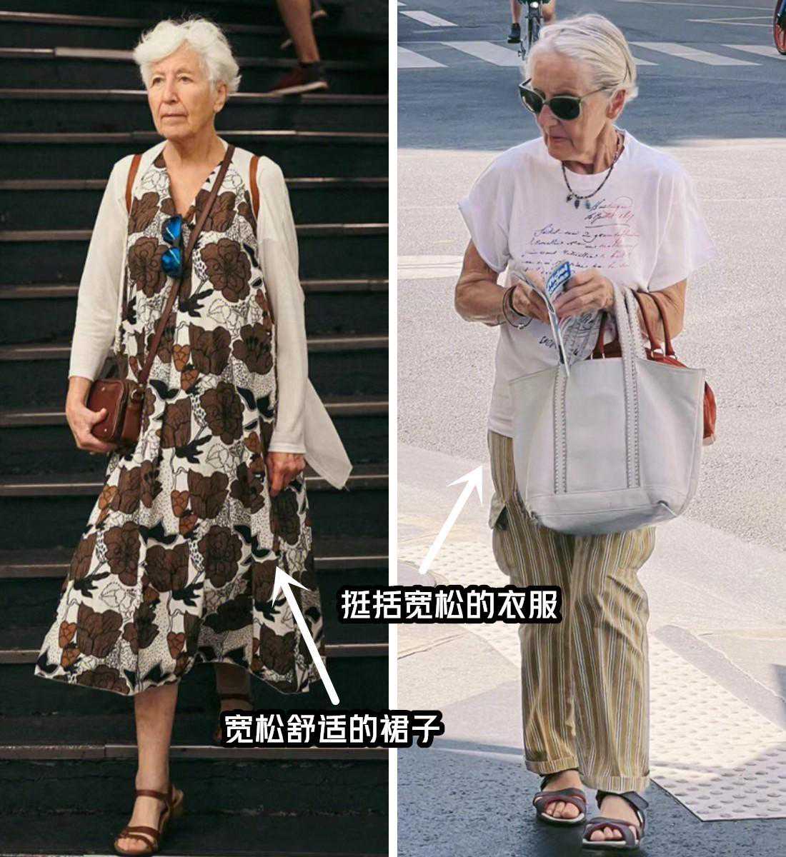 现在很多中老年人都喜欢跟着年轻人学穿搭,塞裤腰、凹腰线、紧身穿搭秀身材,反观巴黎奶奶,宽松长裙、直筒衬衫,最大的特点就是舒服,在舒服的前提下再兼顾时髦,造就了巴黎奶奶独特的“松弛感”。