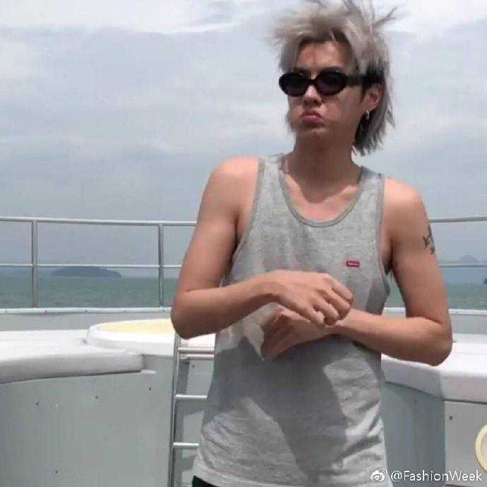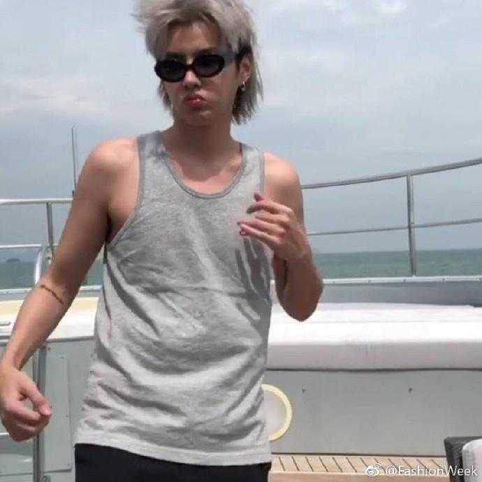 想不到私下里的吴亦凡这么接地气,穿个工字背心嘟着嘴在船上跳舞。