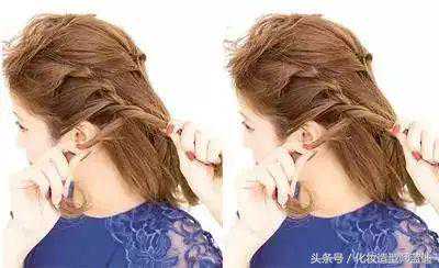 step1:取出左侧前额的头发,如图沿着头型编成发辫。
