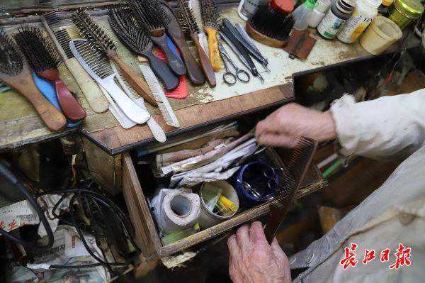 黄文祥师-长江网记者,上午来了两个年轻人要理发,他们看到网上的报道后,花50元要求“烫剪”,“烫剪”俗称烧头发,江湖失传已久,却是黄师傅最拿手的传统理发手艺,就是用淬过火的仍然发红的烙铁棒烧头发,可以让头发蓬松定型。上世纪50年代,火烫头是最时尚的发型。两年前经过媒体报道以后,有不少市民专程到他的理发店来体验这个最古老的理发手艺。