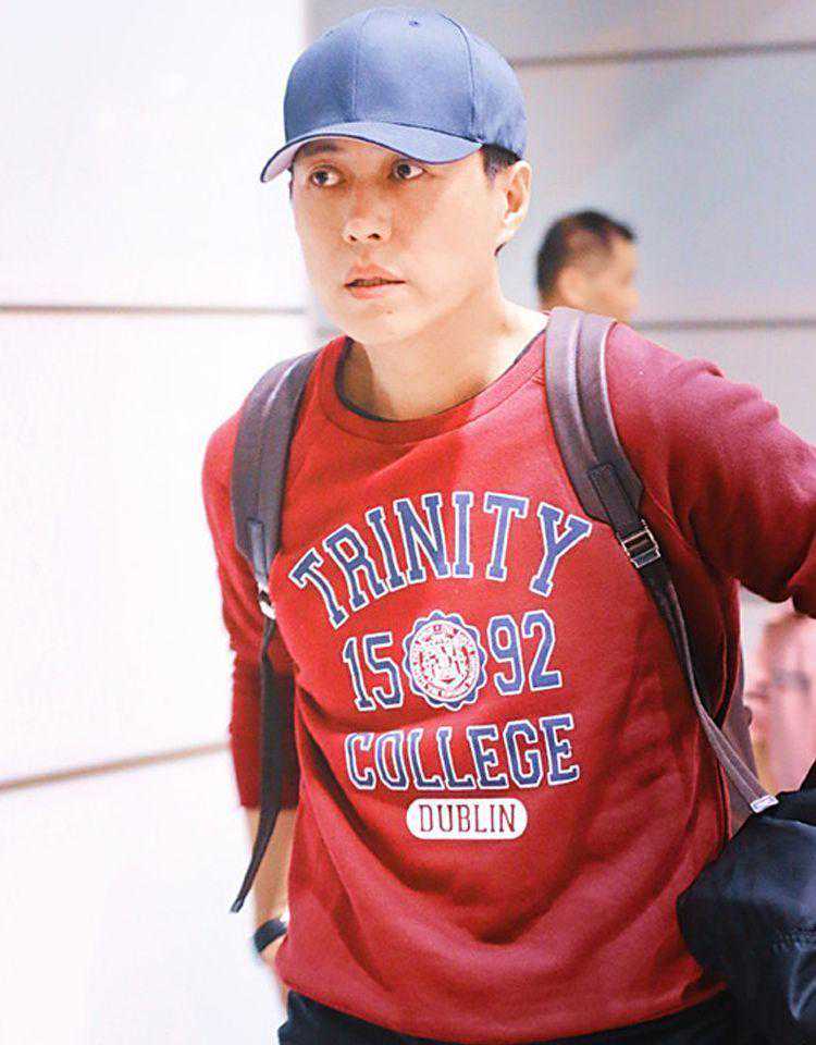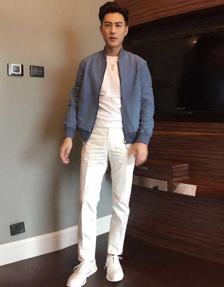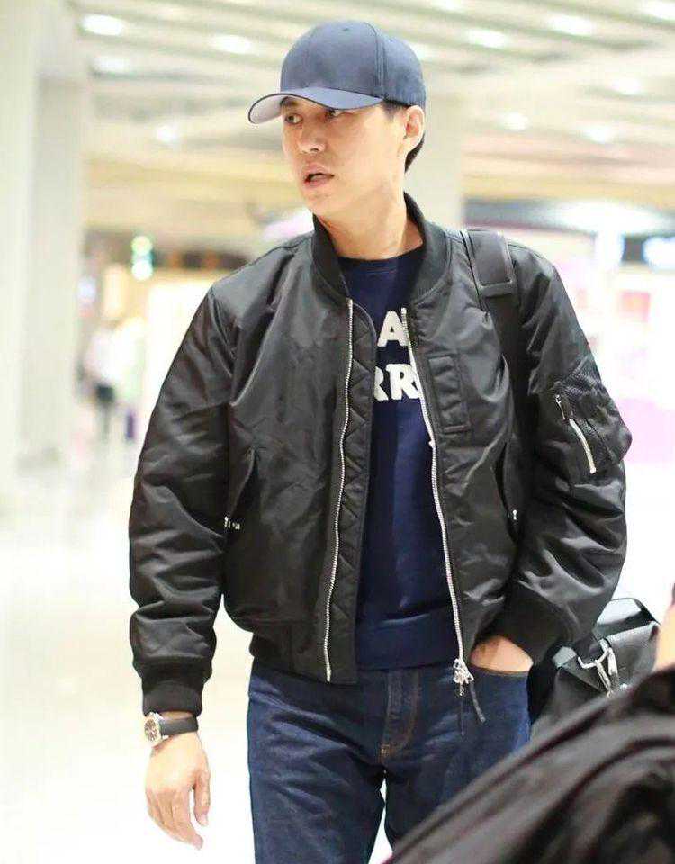 靳东就很擅长玩配色,身穿雾霾蓝棒球服外套,内搭白色T恤打造叠加效果,下半身搭配白色休闲西裤和皮鞋,顺色造型延伸视觉显高又显瘦。