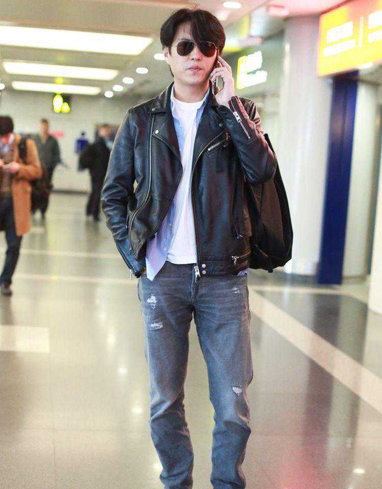 皮夹克虽然具备很强的荷尔蒙属性,但如果搭配不当的话,也会给人一种很机车的土气感,所以在造型上要强化层次感。