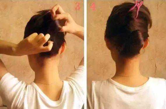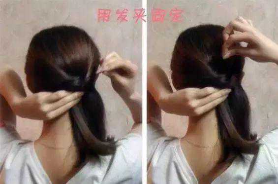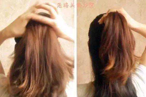 再拿起下面一撮头发也向后