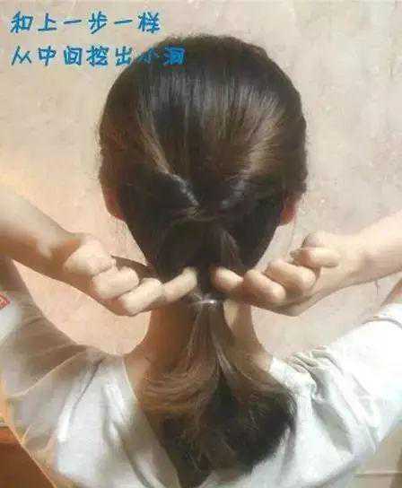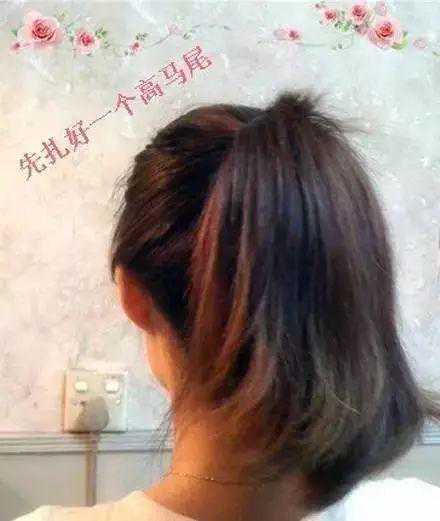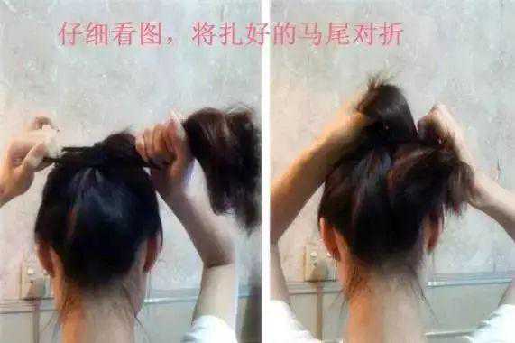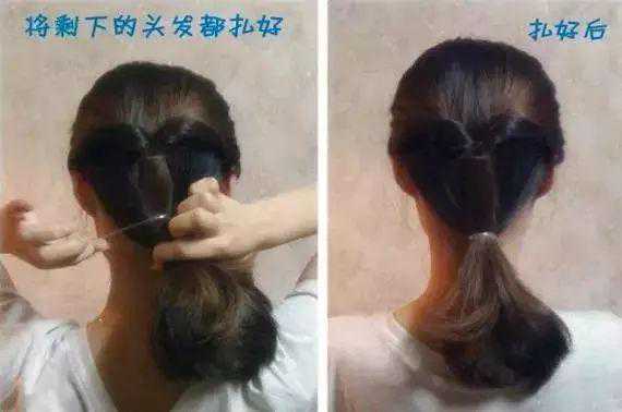 将下面剩下的头发扎成马尾后对折