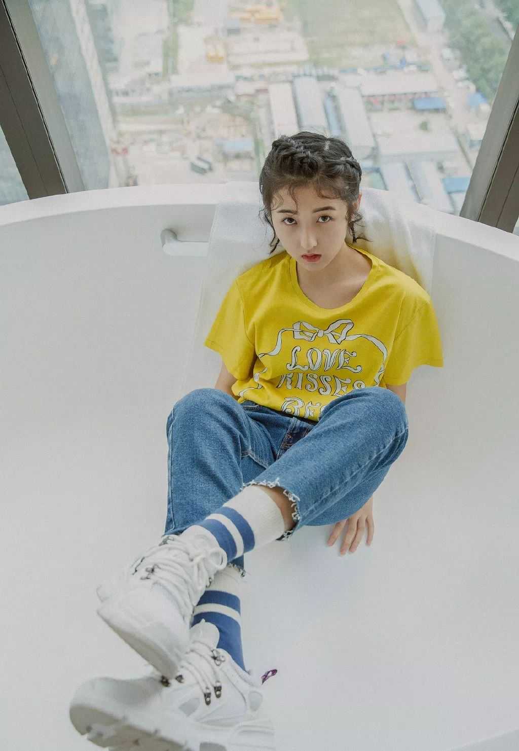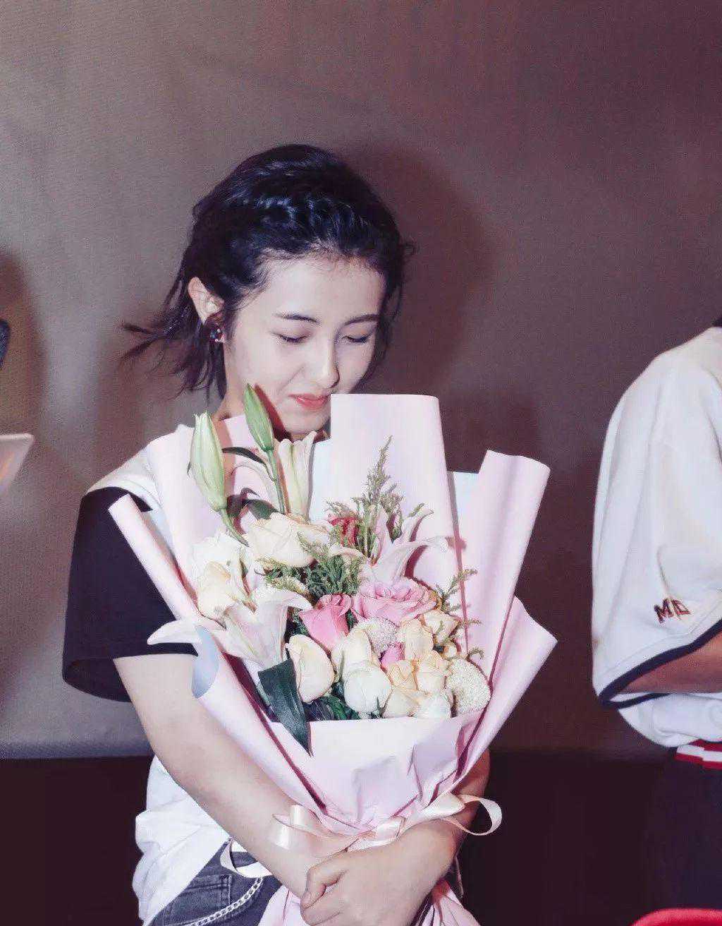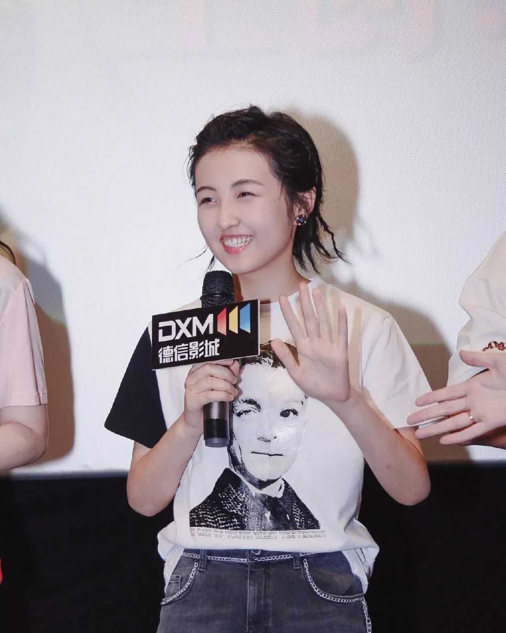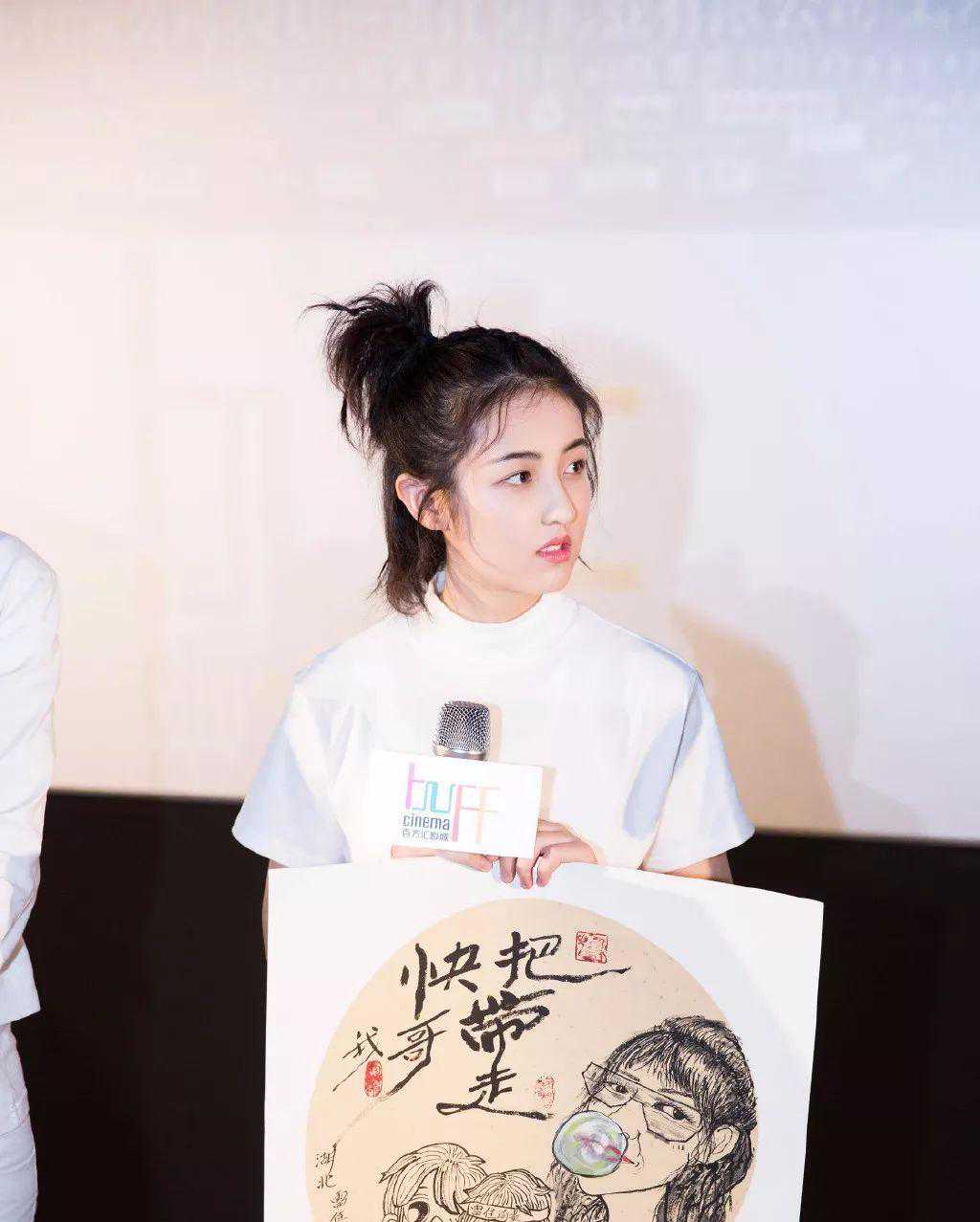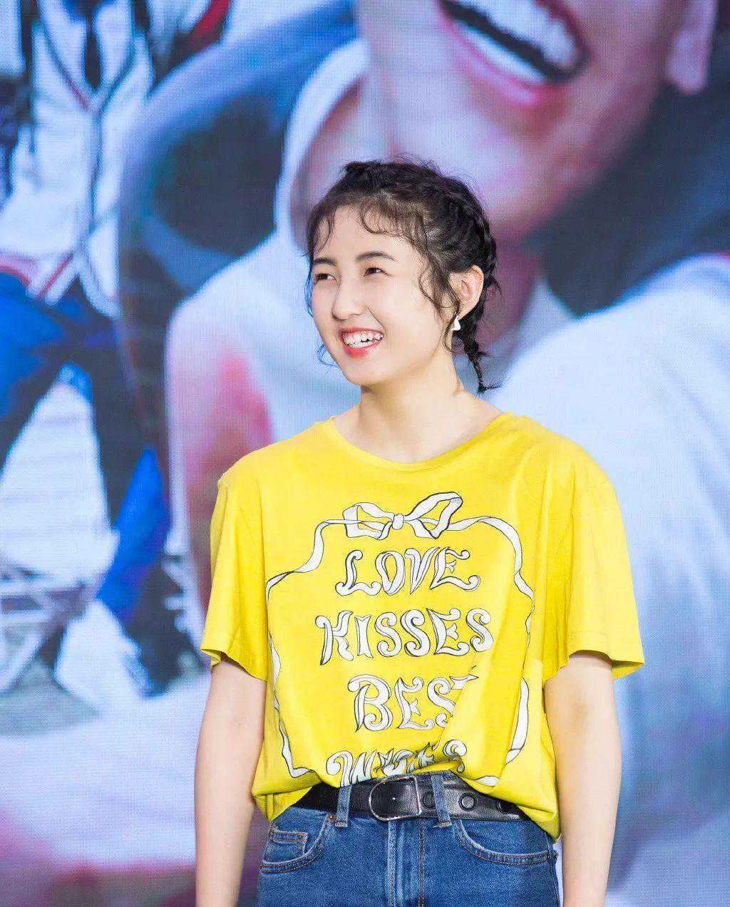如果你是属于子枫妹妹这种露脸显脸小的,千万不要只半扎一点的头发造型。武汉路演时的半扎发才是正确扎法,将上半部分全扎起来,只留些碎发。