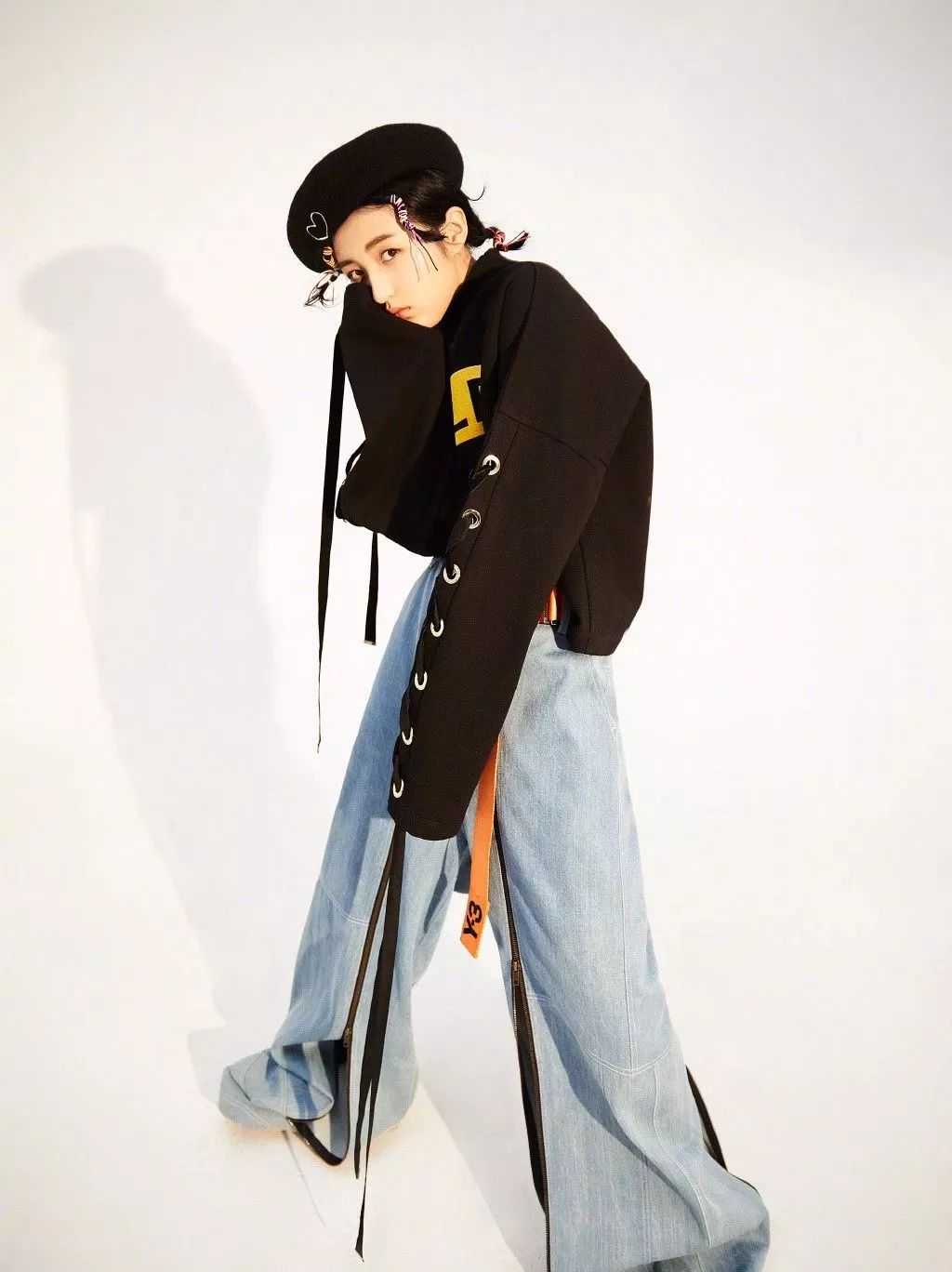 不愧是“鬼马少女”前额的细辫以及发尾的细辫,搭配贝雷帽前卫的古灵精怪的可爱感,这样的风格很适合子枫妹妹呢。