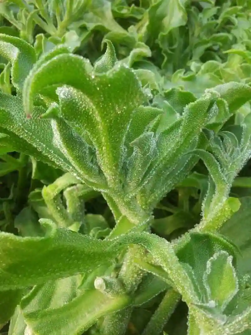 但冰菜是个“狠角色”,它不挑土壤、不需要精细管理,还能从盐碱地里吸收盐分,在叶片表面形成一颗颗晶莹剔透的小“冰珠”。