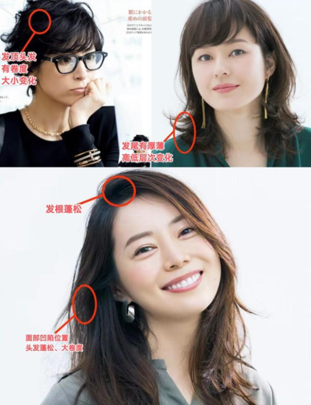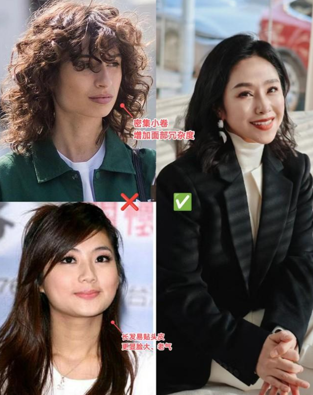 2)衰老疲惫的面部状态配长发、小卷更显老:加剧老态