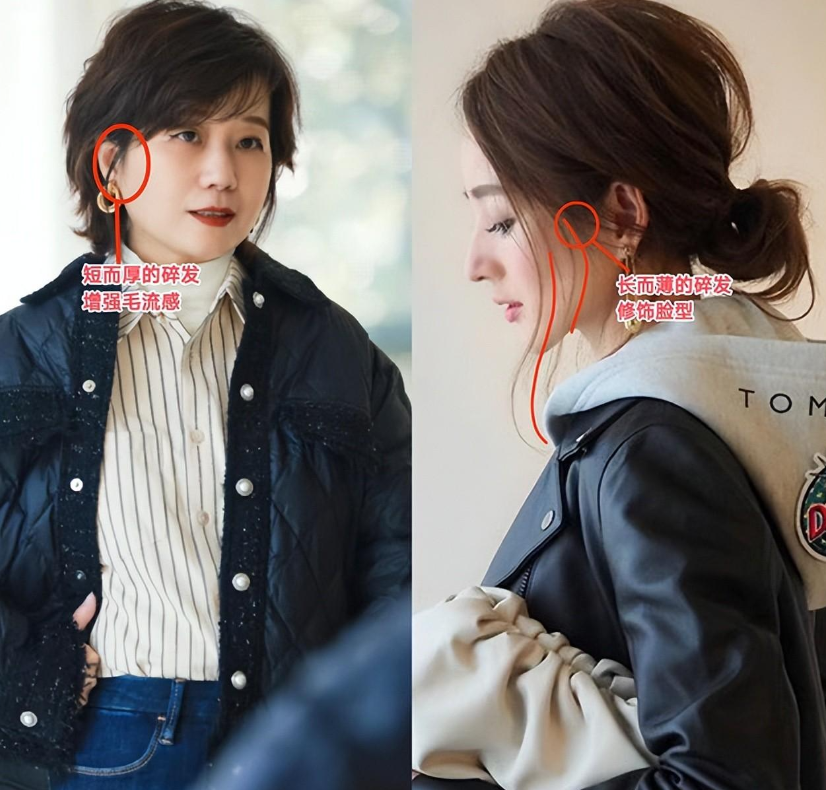 耳侧的碎发可以根据脸型的大小来调整长度和数量,以达到最佳的修饰效果。如若脸型较圆,可以留一些稍长的碎发;若脸型较长,则可以选择短碎发以增加脸部宽度感。