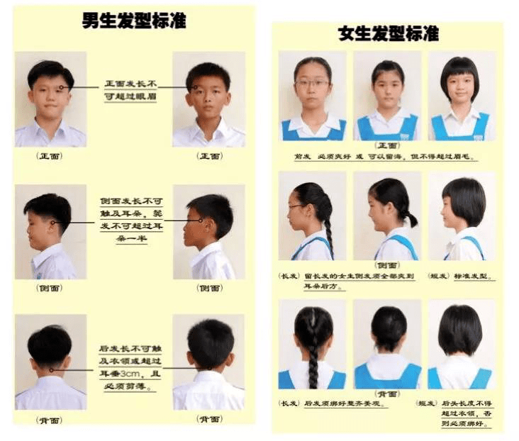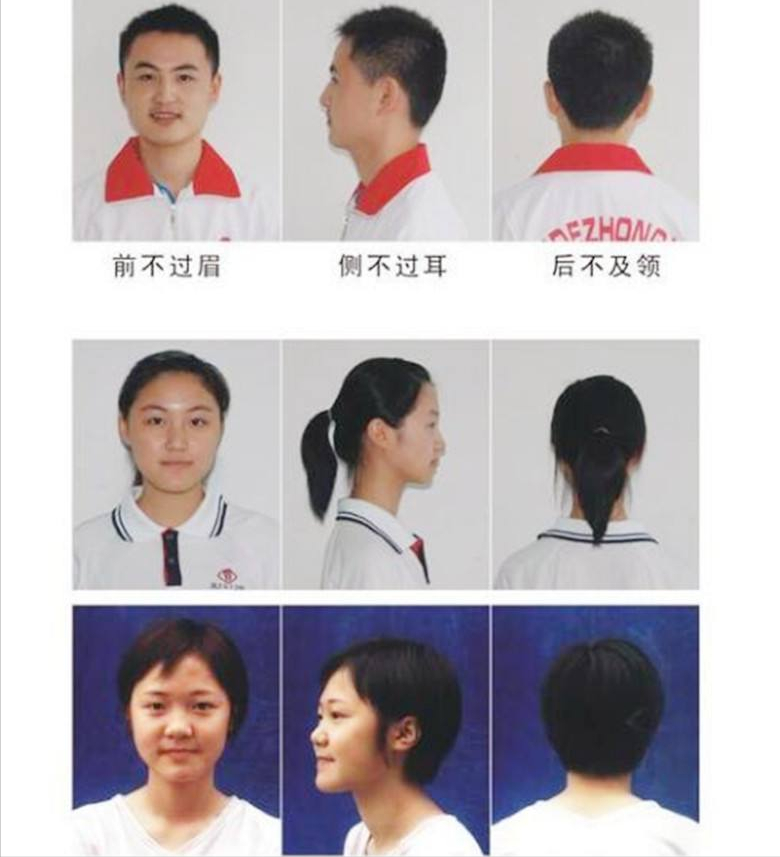 标准发型自然也不会太奇怪,或者对学生的长相要求太高,有一些学校则是简单粗暴,直接拿出一张标准图,列出几个比较常见的发型。