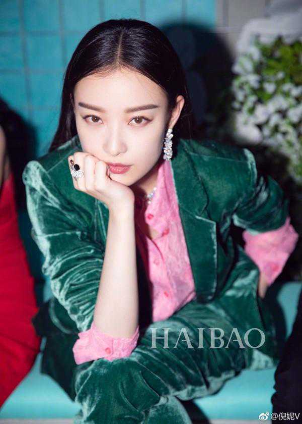 高扎刘海的倪妮也很好地印证了"颜好任性"的话,脸型根本就不用修饰嘛~