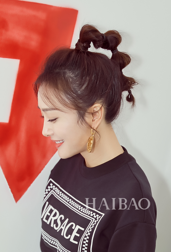 娜扎的凌乱感丸子头由于外挑了一些发丝,对脸型的修饰效果也很好,大家记得拿小本本记下这个小心机鸭~