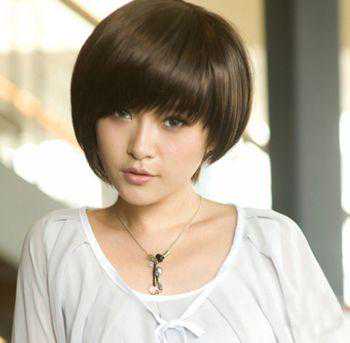 不对称的沙宣蘑菇头短发发型,很适合长脸女生哟,倾斜的刘海,和前置的侧边发型,将长脸完美的修饰成小脸,整个蘑菇头短发烫成内扣弧线型,打理成饱满光滑的质感,清爽俏皮,又不显得幼稚。