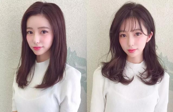 如果头发厚多,但不想剪短发,也可以剪成中长发。分为两种设计: