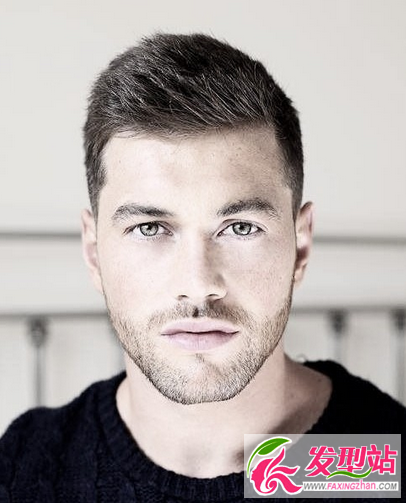 男生寸头短发发型,中间渐变长度,虽然整体是圆弧造型,但是刘海是向一边定型的,看起来更加时尚。