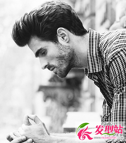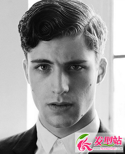 男生背头造型,相比第一款背头,这款背头更加适合成熟的男士,背头发型不是整齐的向后梳理,而是把刘海烫卷向后定型,卷发线条更显男士魅力。