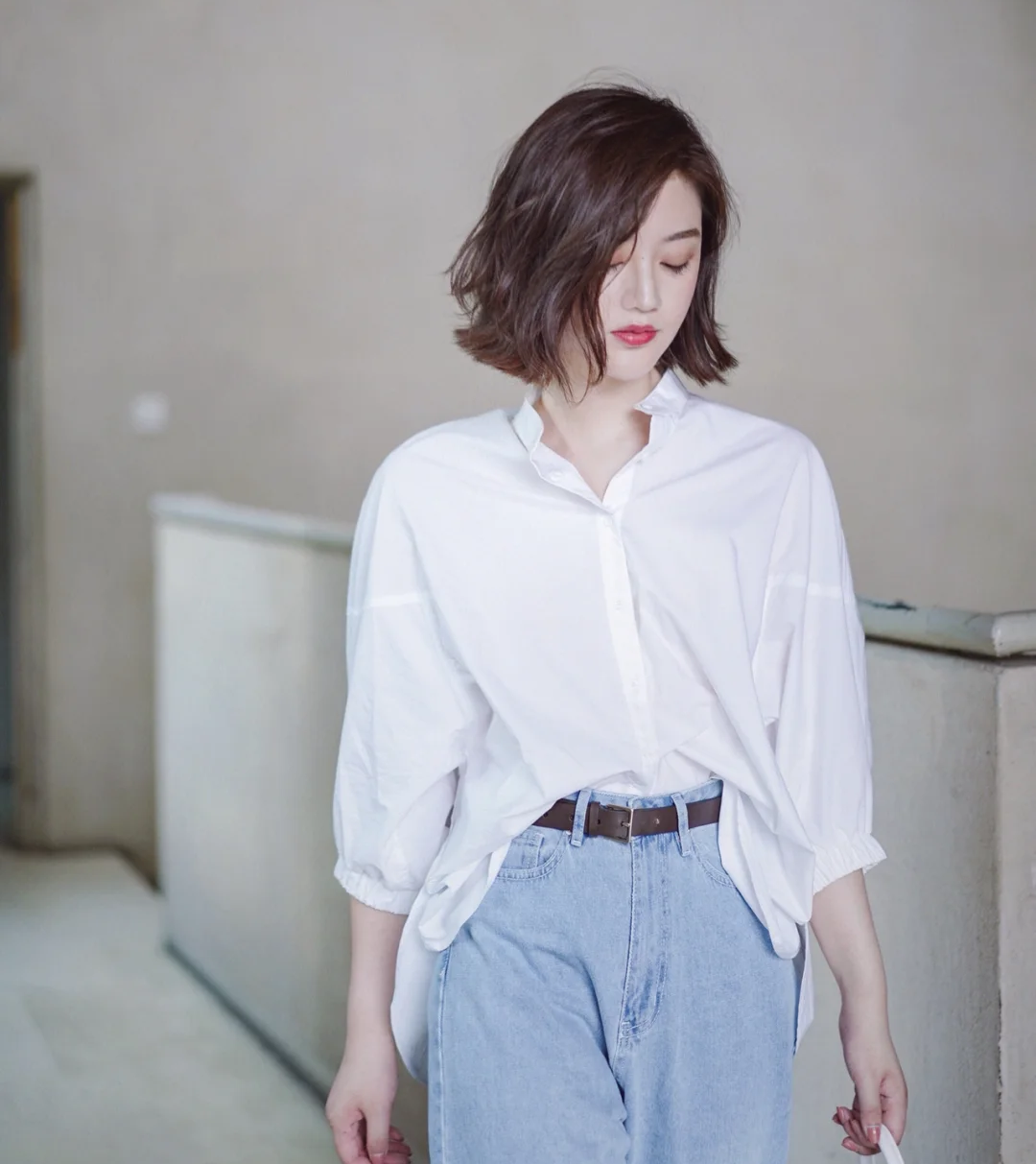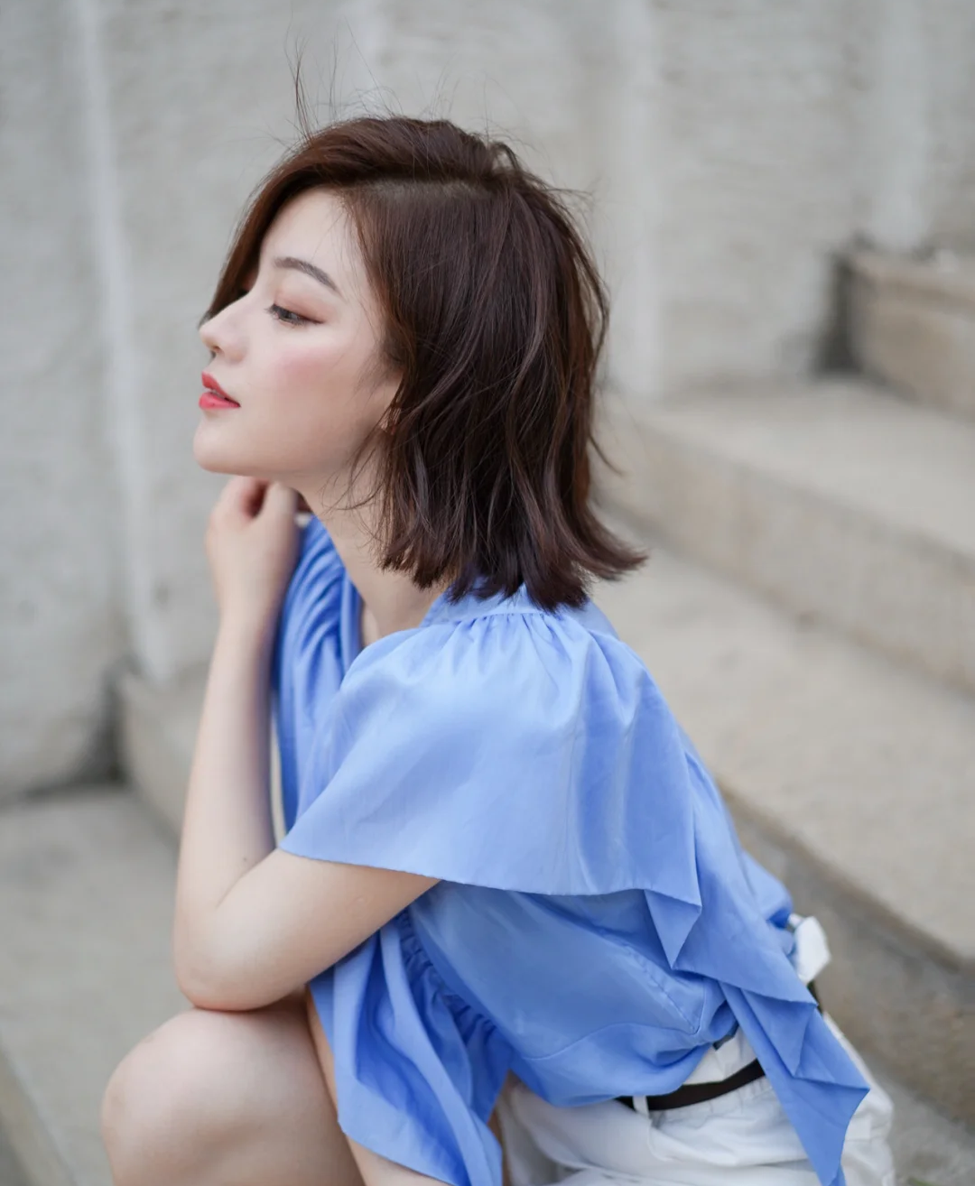 以往短发总会搭配齐刘海和空气刘海,但这样繁重的感觉总会有一些天然呆萌,与我们所追求的轻熟知性相悖。而侧分露出额头显然要更优雅知性一些,蓬松气垫感则是营造轻熟和熟零女性的一个重点。一是将面部线条在视觉上看起来更柔和,弱化面部的呆板感,让五官更加精致。