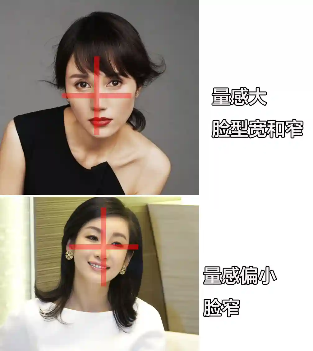 比如袁泉和秦海璐,都是知名的女明星。袁泉多以“短发”示人,而秦海璐多以长发为主,其实从五官量感下去分析她们两个人的脸型,就会得出答案: