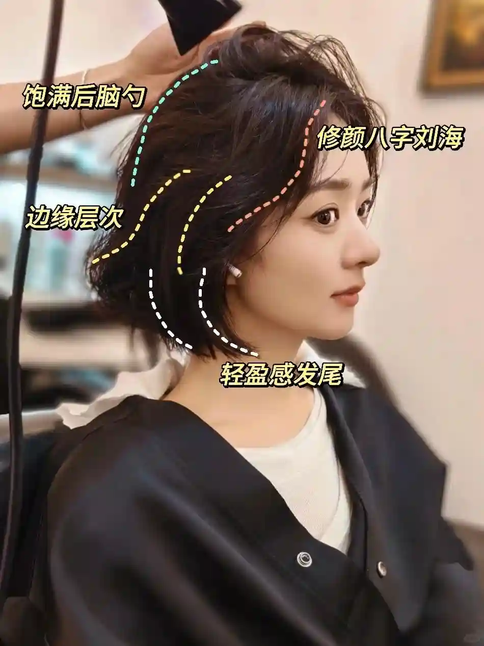 如果你属于典型的发量王者,那选择任何发型打造发型的轻盈感就显得十分重要,比如我们前面说到的大龄女性选择“一到切”的厚重刘海也是这个道理,只有发量足够轻盈,才能展现发量,体现你的精致。