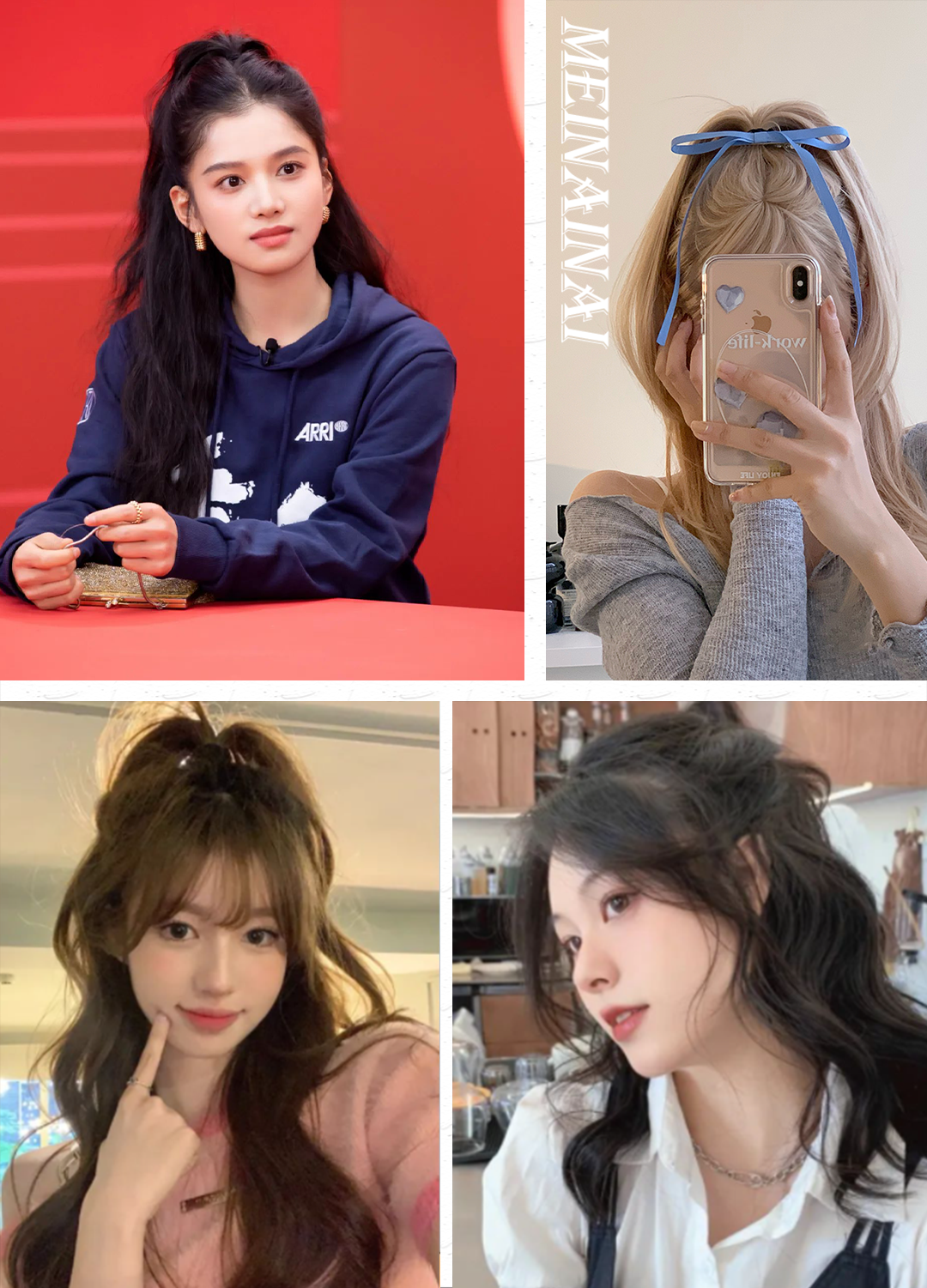 比起全扎的高马尾,半扎更不挑人,还能修饰脖子粗、脸型的问题,更增添了一丝妩媚感~