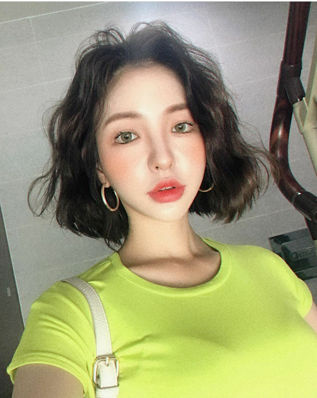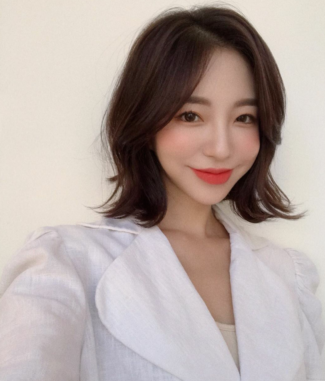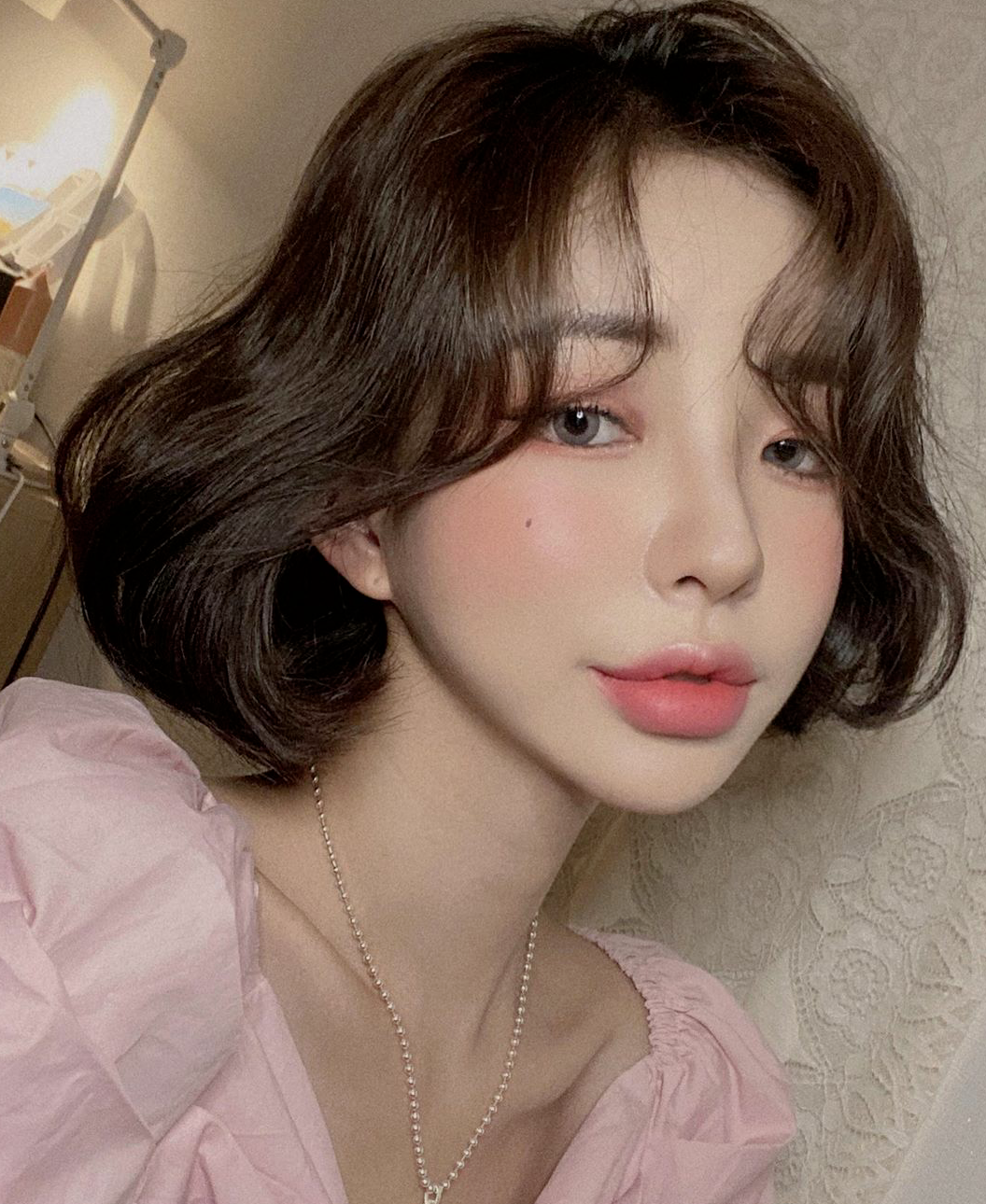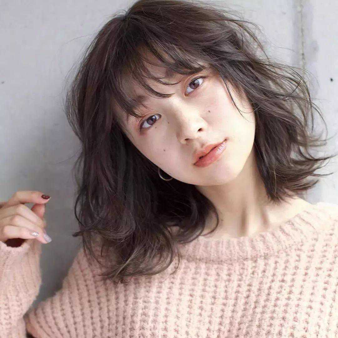 齐肩微卷搭配轻薄的刘海非常修颜,不会显得服帖,带点蓬松感的头发更适合发量少的妹子哦。