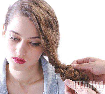 发梢保留约一节手指长度,用皮筋扎好,编好的发辫随意抓松以制造随意感。最后由头皮位置开始,随个人喜好,轻力拉松鬓辫至理想程度。