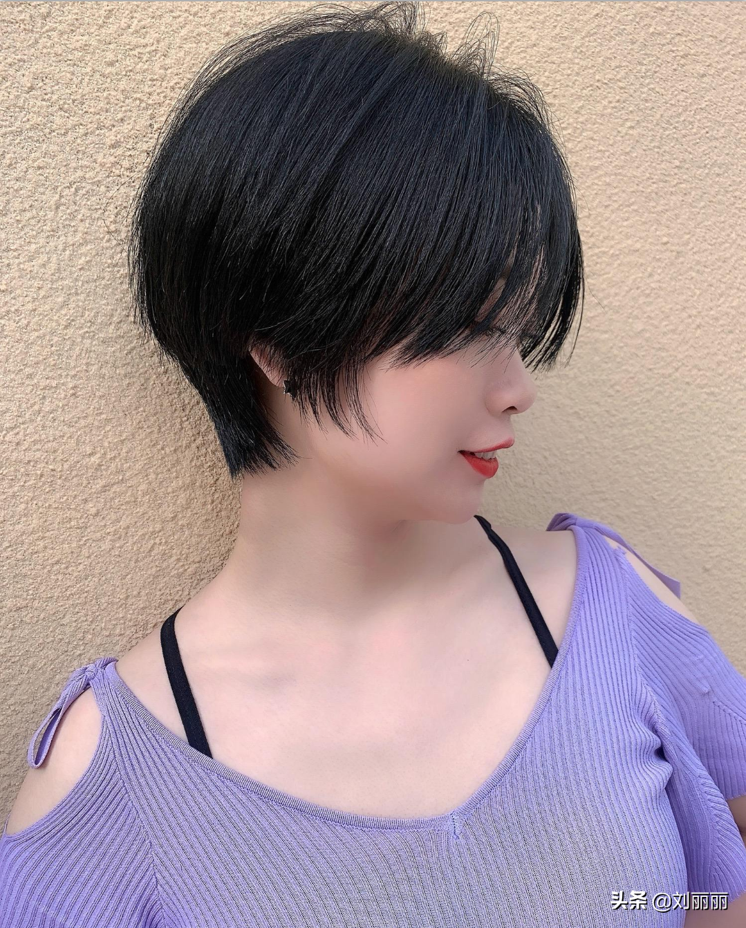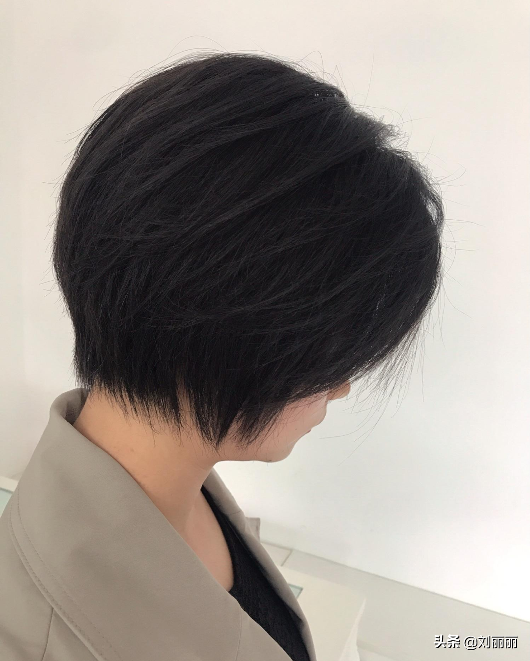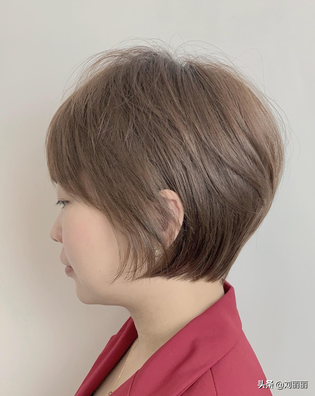 齐脖层次短发搭配深咖发色特别有气质。侧分刘海具有修颜瘦脸的效果,整体效果优雅大方适合30岁左右女性。