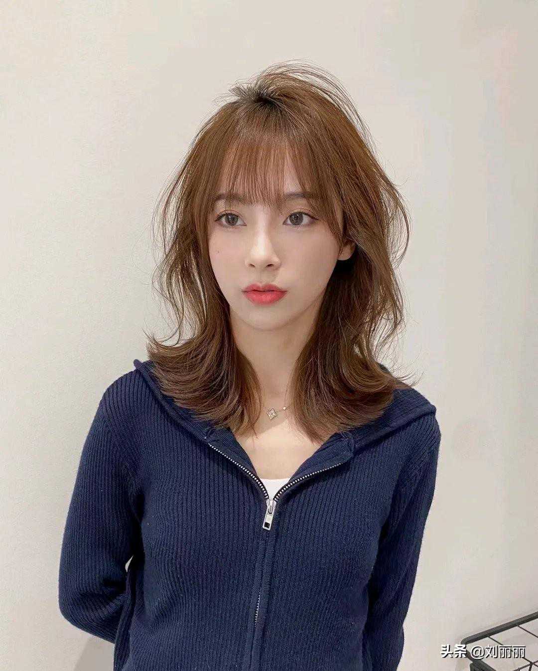 蓬松内扣的锁骨发搭配上法式刘海,可以说是近两年特别火爆的发型,很衬脸型很显气质,想不美都难。