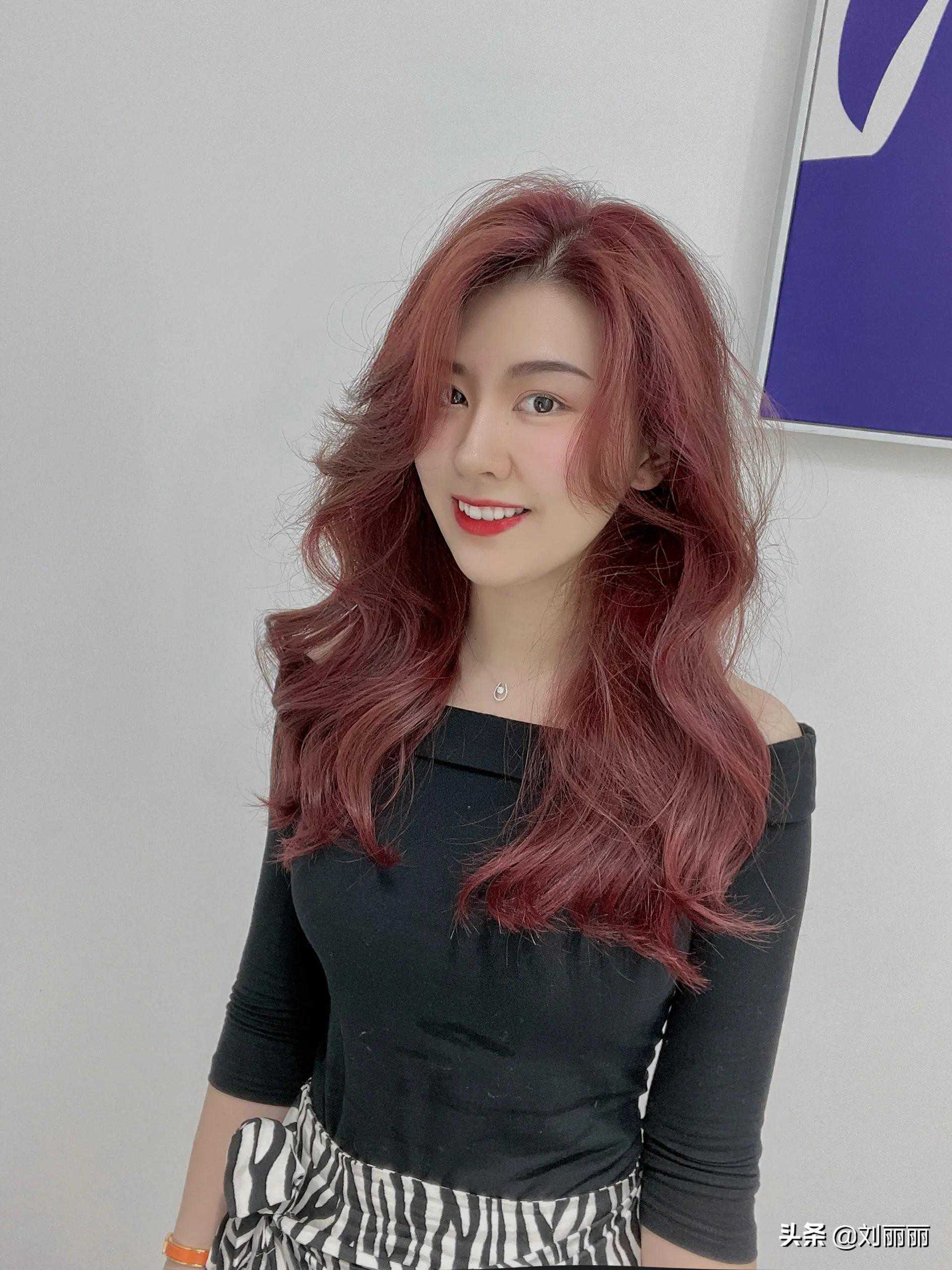 风情的长发造型可以说是女性展现自我魅力最好的体现,四六分大卷造型由头顶呈现到发尾,把整个人的气质表现得淋漓尽致,大S型的刘海配上紫红色的染发,百变漂亮惹人心动。
