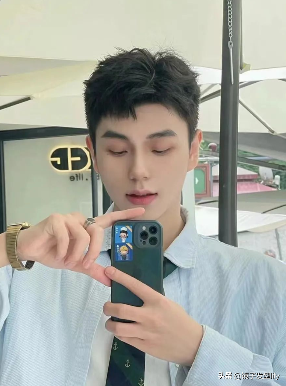 当下流行的分头造型,两侧头发一般也不会留得太长,因为太长的头发显得整个人很不精神,也不容易和头顶形成对比。