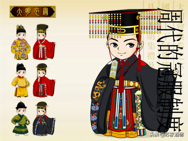 但是随着年龄的不断增长,男性作为当时权力的主体,这发型变化与政治礼仪就愈来愈密切。其中有一项便是重要的冠服制度。冠服制度初步建立于夏商时期,到了周代逐步完善,春秋战国之交被纳入礼治,之后历朝不断发展完善。冠服制度象征着等级阶级,象征着封建社会的统治精神,是当时儒学思想的重要体现,还是政治反应于礼仪制度的标志。